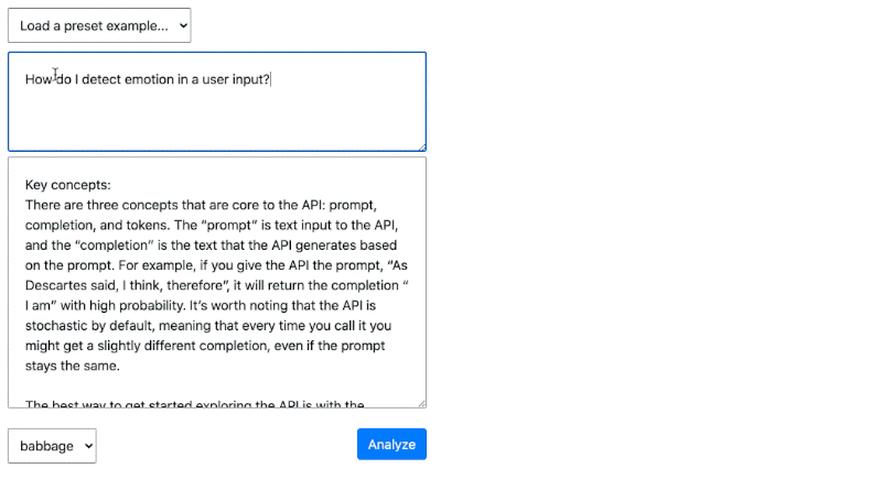 Okay, what is it? Think about how you answer a question like when someone wants to know your favorite movie or how to solve a problem. Semantic Search is like that with text. You give it a list and a query and it comes up with the best example. You can sort through anything that’s in text: Paragraphs from a story, tweets, user documentation, plots to movies, code, etc., and use the power of GPT-3 to help you find matches, categorize it, pull the right response to a question or any number of things we do when someone asks us a question. I don’t mean keyword matches. I mean really smart, thoughtful matching. Give it the name of a movie and list of plot types and it will tell you which one it most closely matches. Just drop in all of your use documentation and send it a question (and nothing else!) and it will pull up the most relevant example.